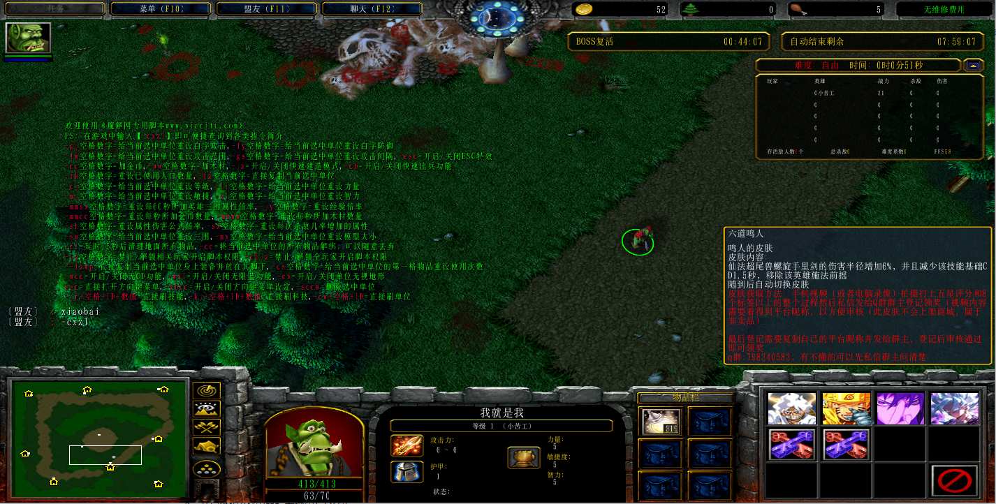 地图名字:吃饭睡觉打豆豆1.1.603地图下载+全商城特权+全存档+隐藏英雄+无CD+指令功能