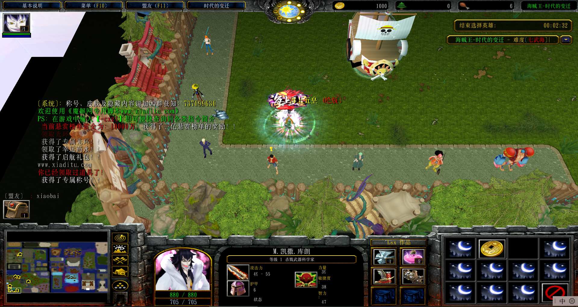 地图名字:时代的变迁5.1.7地图下载+全商城特权+全存档+隐藏英雄+无CD+指令功能