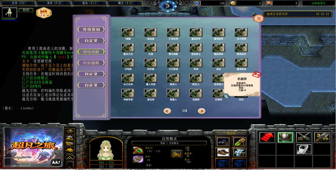 地图名字:超凡之旅1.0.60地图下载+全商城特权+全存档+隐藏英雄+无CD+指令功能