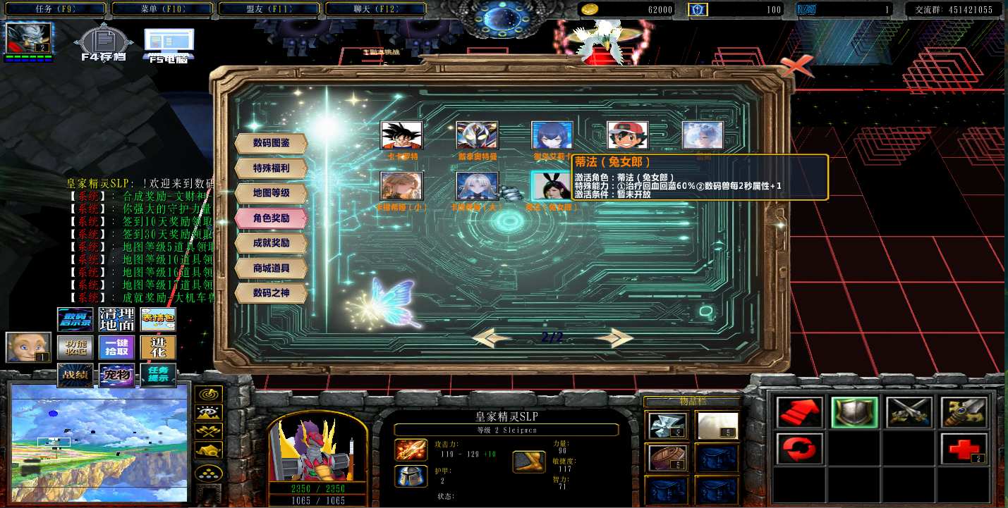 地图名字:数码新世界DW1.0.222地图下载+全商城特权+全存档+隐藏英雄+无CD+指令功能