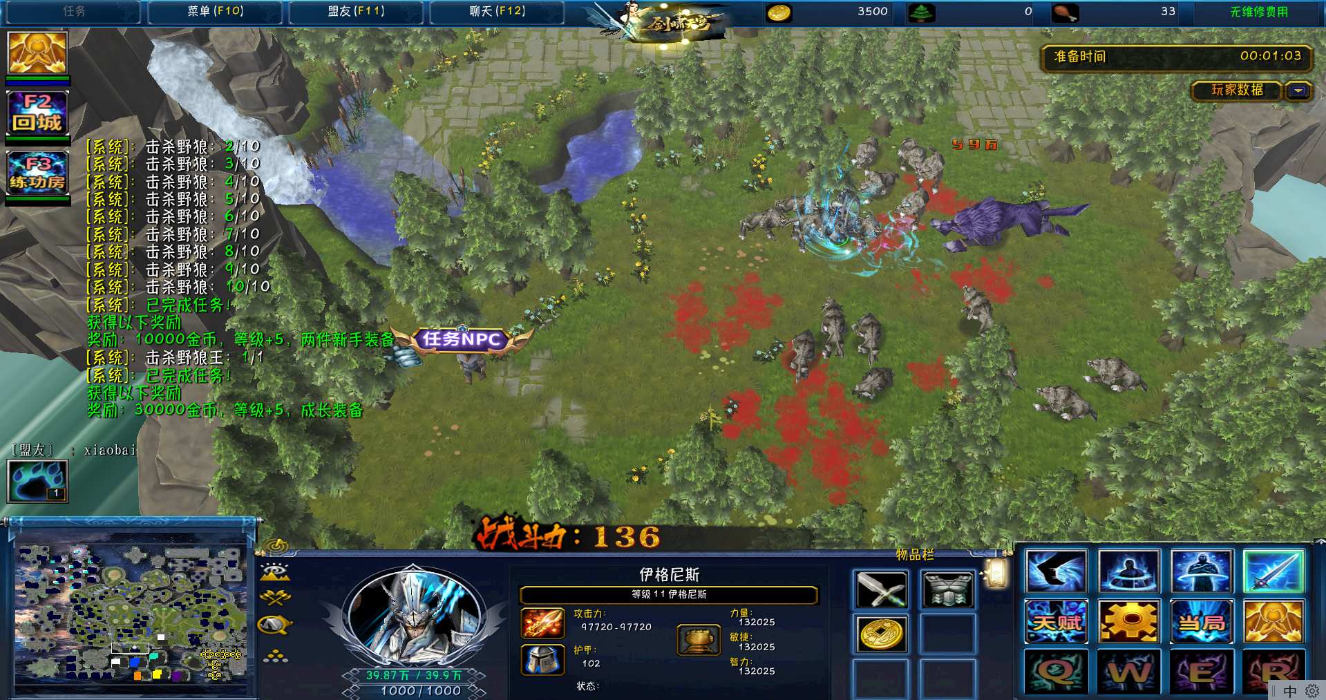 | 技能菜单【光环类技能】 | 自动化菜单【自动加钱木,提升英雄三围】 |
