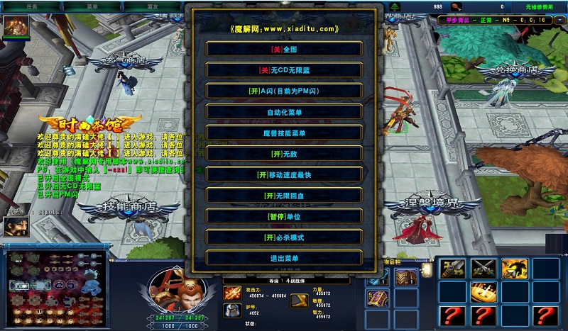 | 技能菜单【光环类技能】 | 自动化菜单【自动加钱木,提升英雄三围】 |