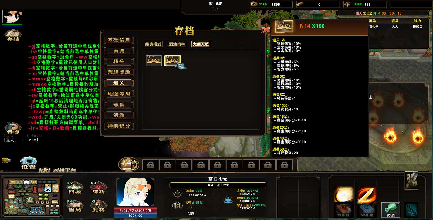地图名字:仙人之上2 1.0.70地图下载+全商城特权+全存档+隐藏英雄+无CD+指令功能