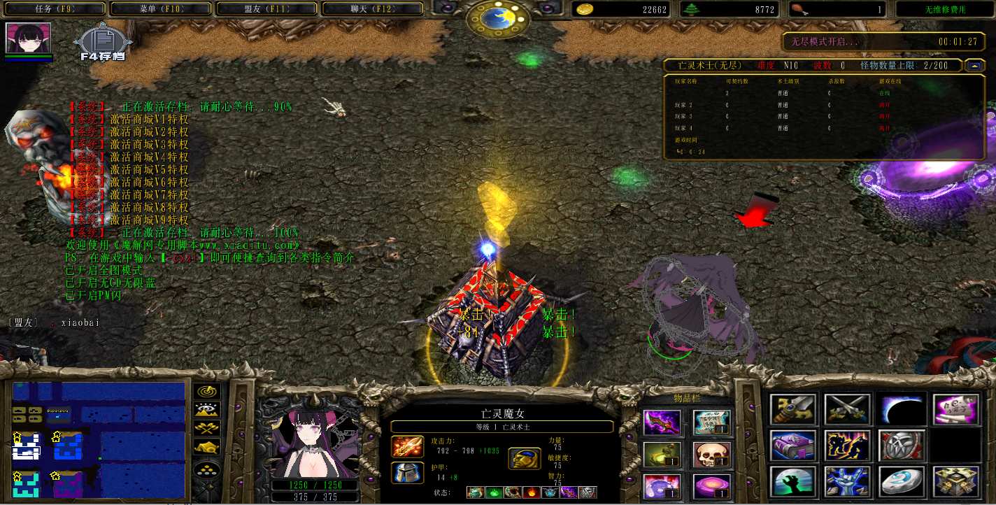 地图名字:亡灵术士1.0.43地图下载+全商城特权+全存档+无CD+指令功能