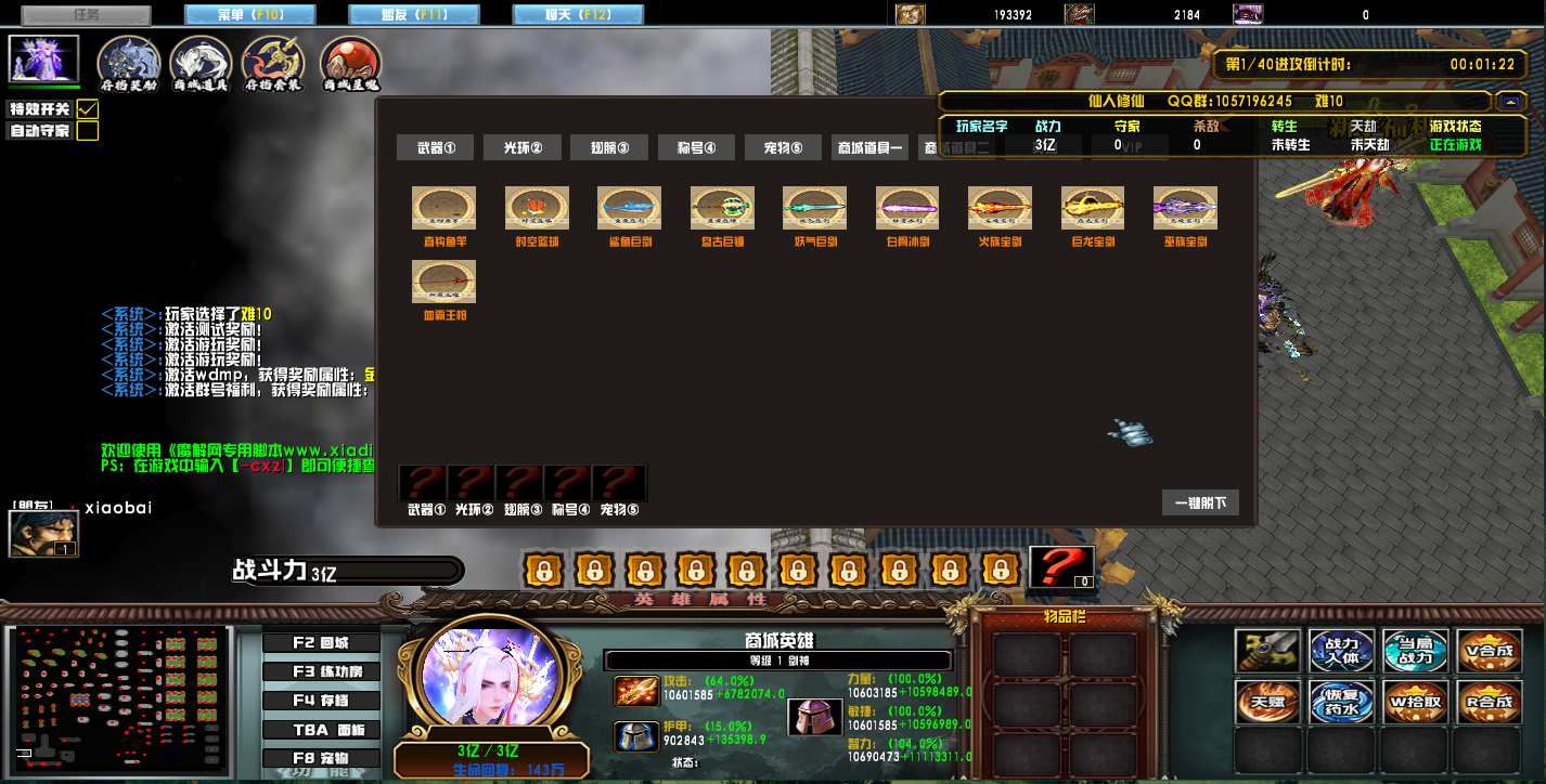 | 技能菜单【光环类技能】 | 自动化菜单【自动加钱木,提升英雄三围】 |