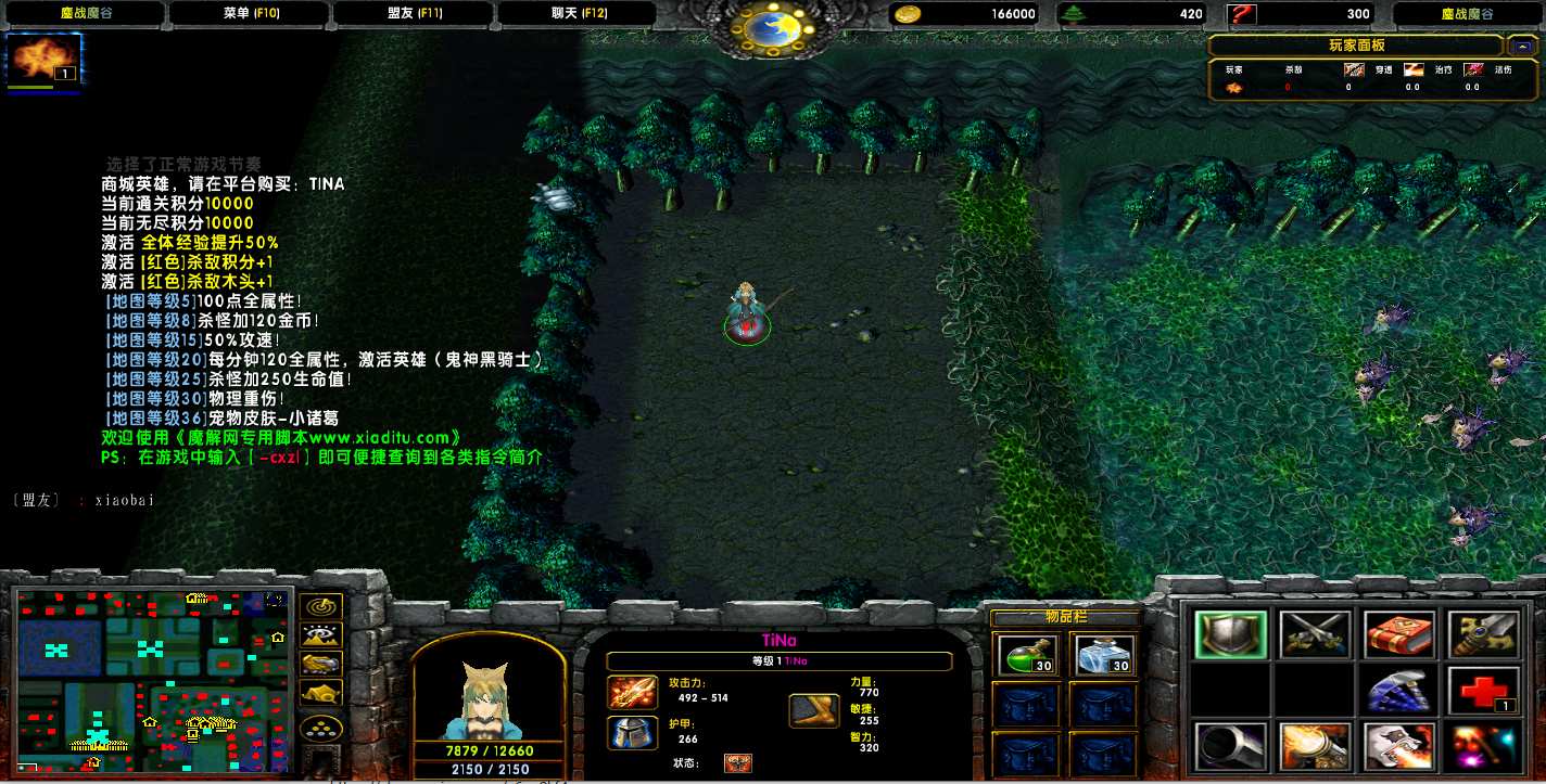 地图名字:鏖战魔谷1.3.7地图下载+全商城特权+全存档+隐藏英雄+无CD+指令功能