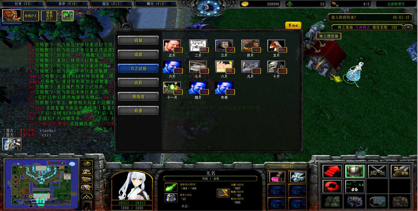 地图名字:神之墓地2.9.149地图下载+全商城特权+全存档+隐藏英雄+无CD+指令功能
