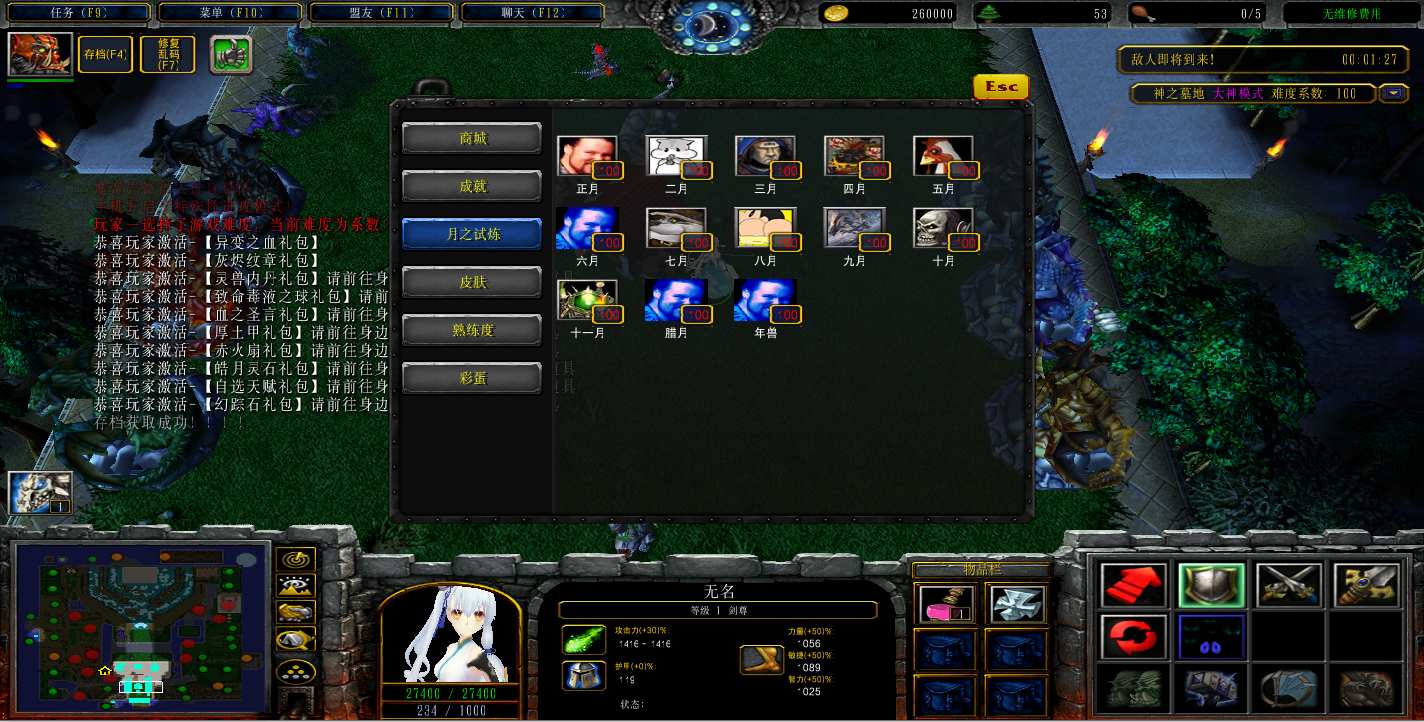 地图名字:神之墓地2.9.150地图下载+全商城特权+全存档+隐藏英雄+无CD+指令功能