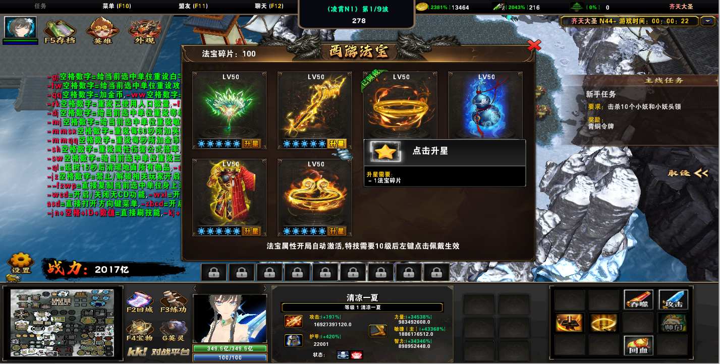 齐天大圣1.0.319地图下载+全商城特权+全存档+隐藏英雄+无CD+指令功能: