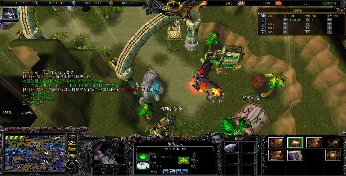 地图名字:英雄的远征3.8.4地图下载+全商城特权+全存档+隐藏英雄+无CD+指令功能