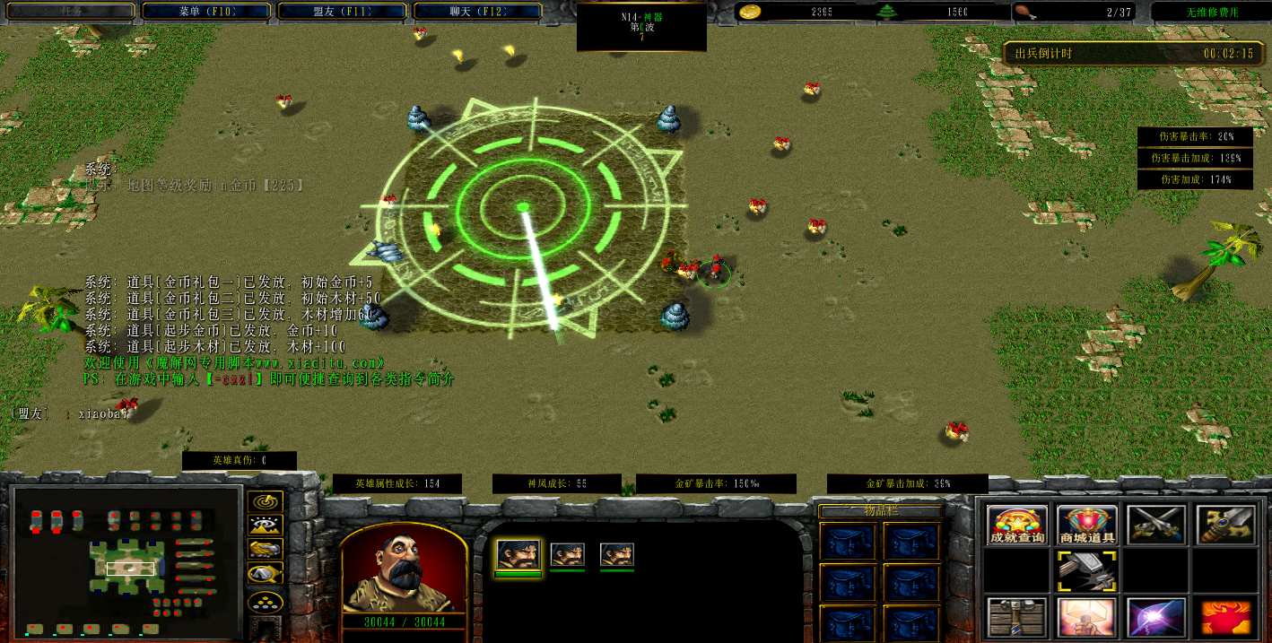 | 技能菜单【光环类技能】 | 自动化菜单【自动加钱木,提升英雄三围】 |