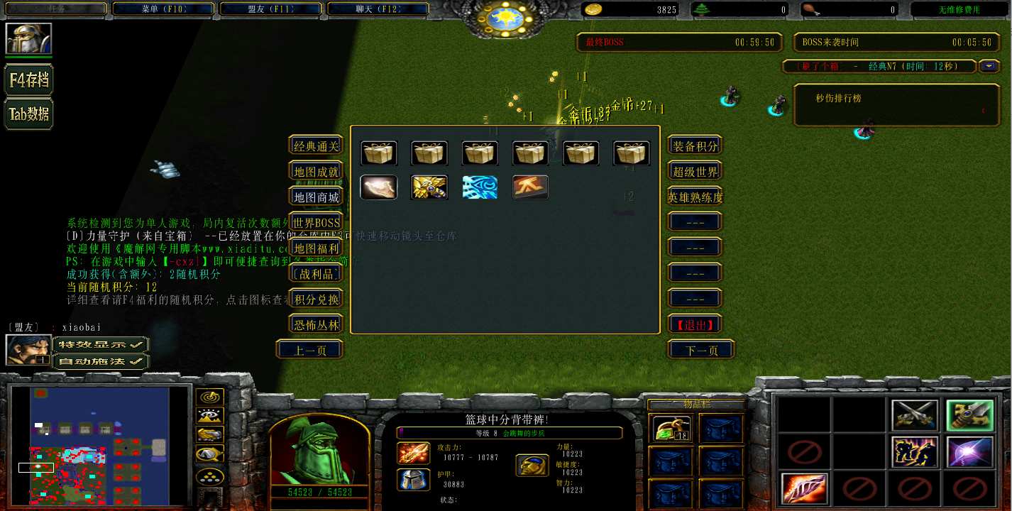 | 技能菜单【光环类技能】 | 自动化菜单【自动加钱木,提升英雄三围】 |