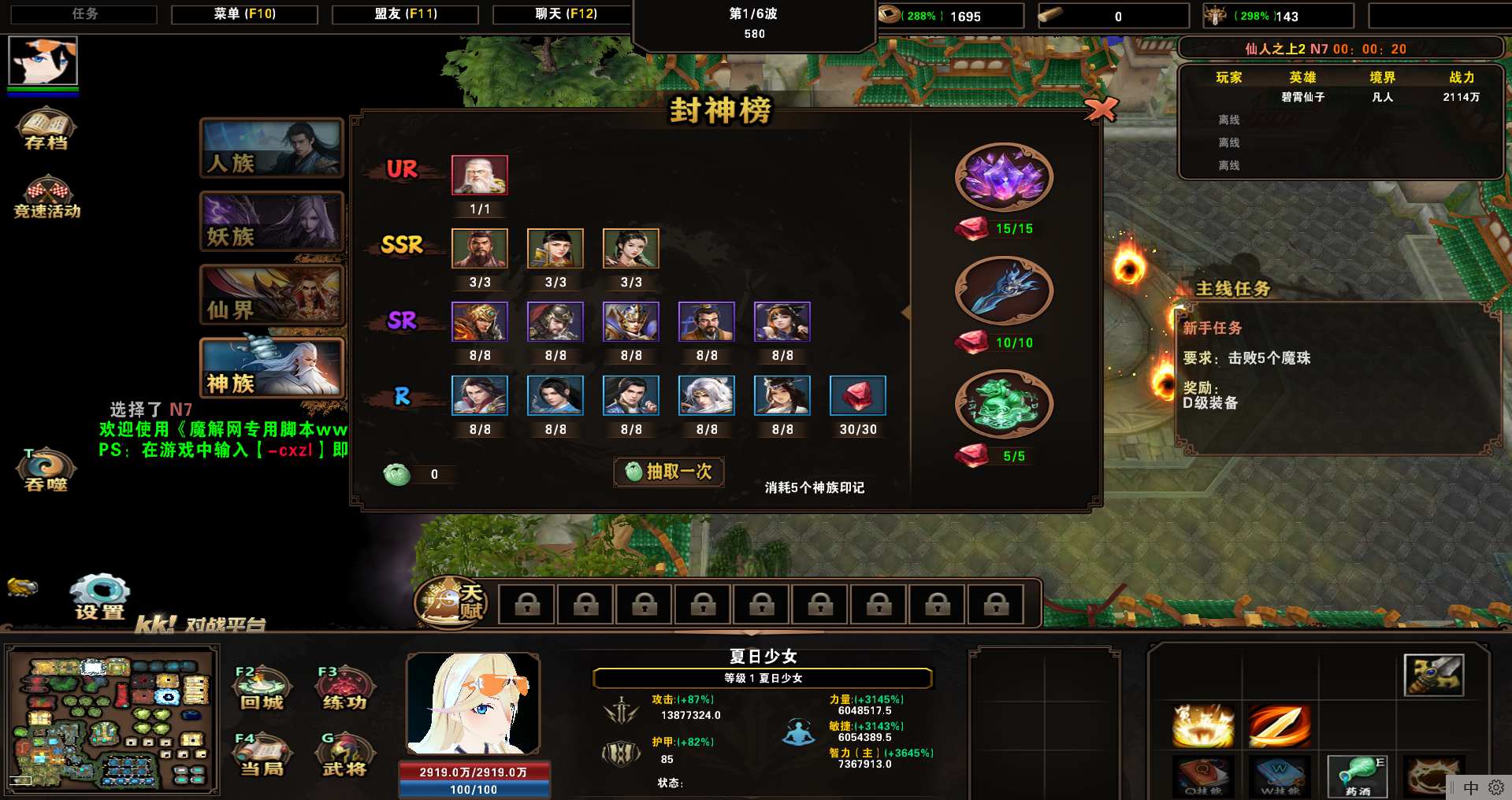 地图名字:仙人之上2 1.0.80地图下载+全商城特权+全存档+隐藏英雄+无CD+指令功能