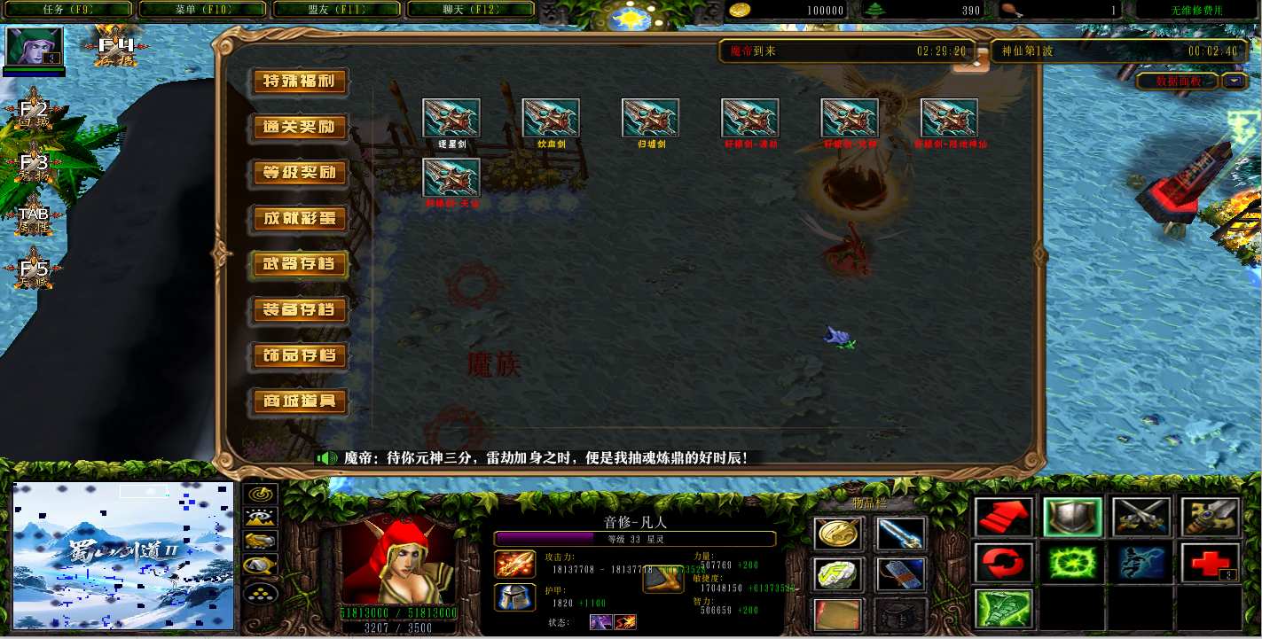 地图名字:蜀山剑道II 1.1.23地图下载+全商城特权+全存档+无CD+指令功能