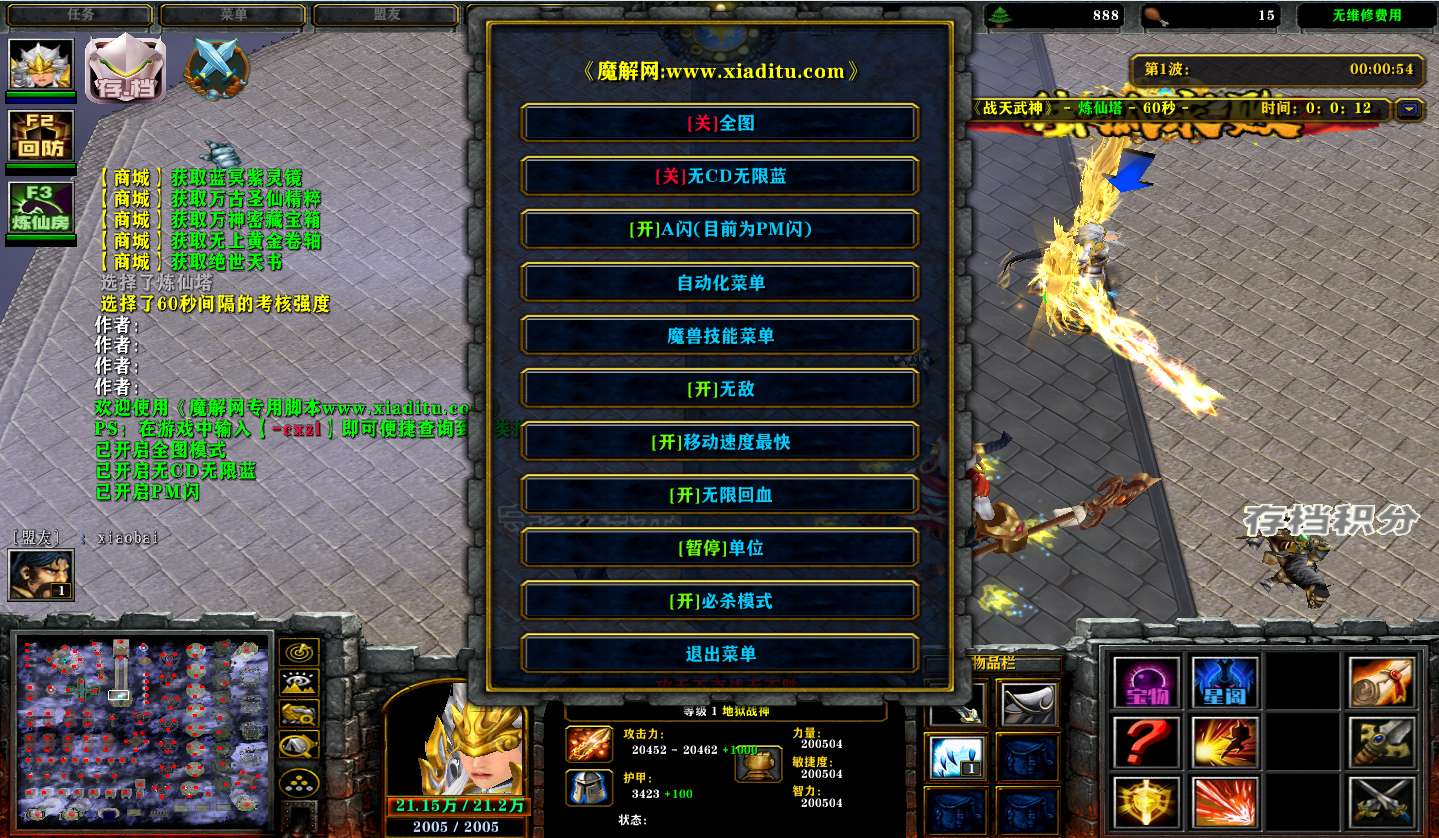 | 技能菜单【光环类技能】 | 自动化菜单【自动加钱木,提升英雄三围】 |