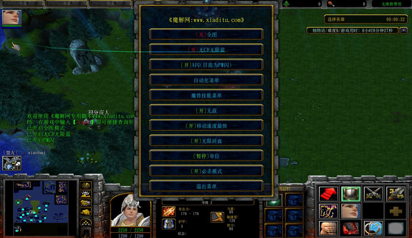 | 技能菜单【光环类技能】 | 自动化菜单【自动加钱木,提升英雄三围】 |