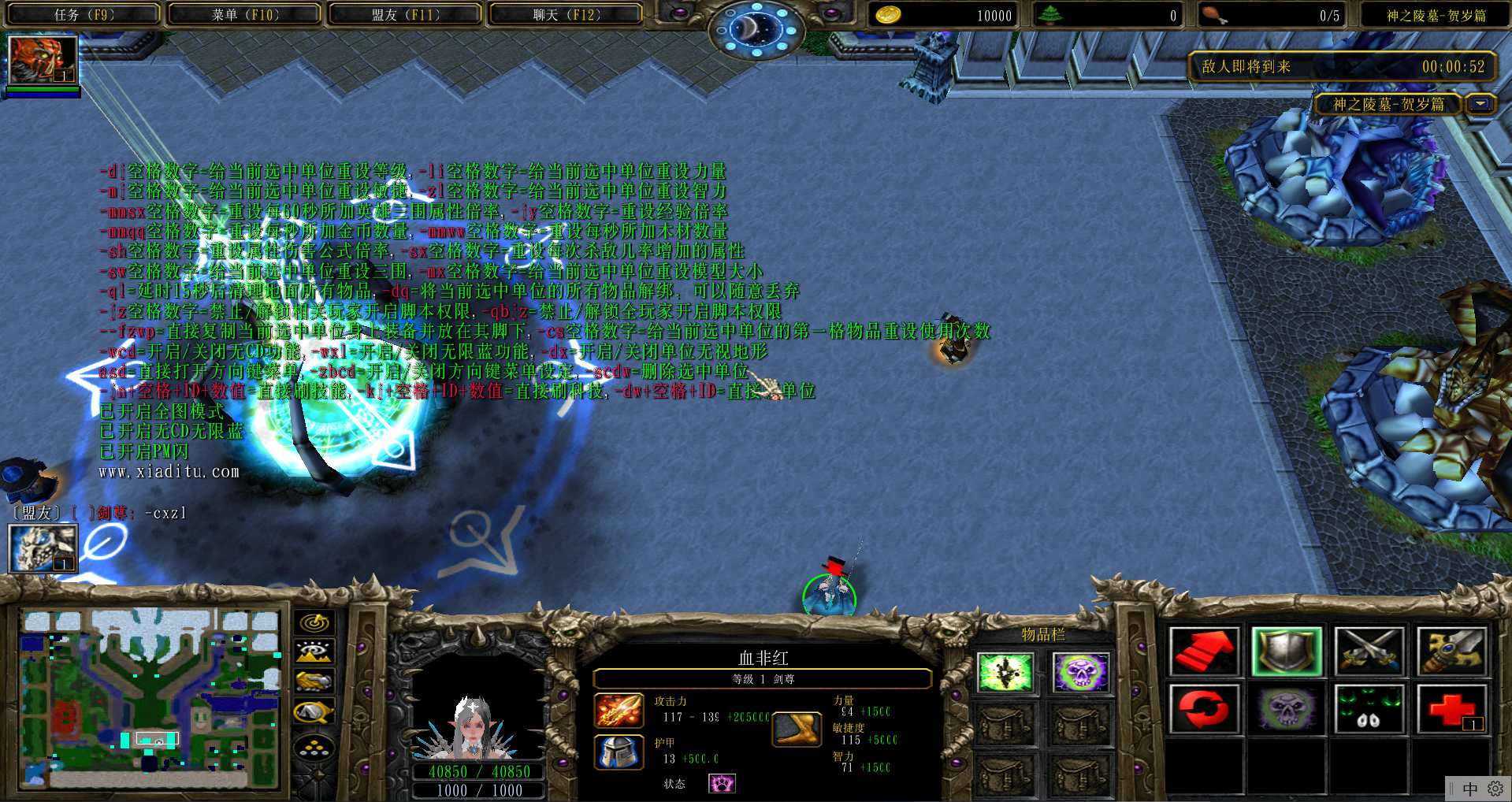 地图名字:神之陵墓贺岁篇2.671地图下载+全商城特权+全存档+隐藏英雄+无CD+指令功能
