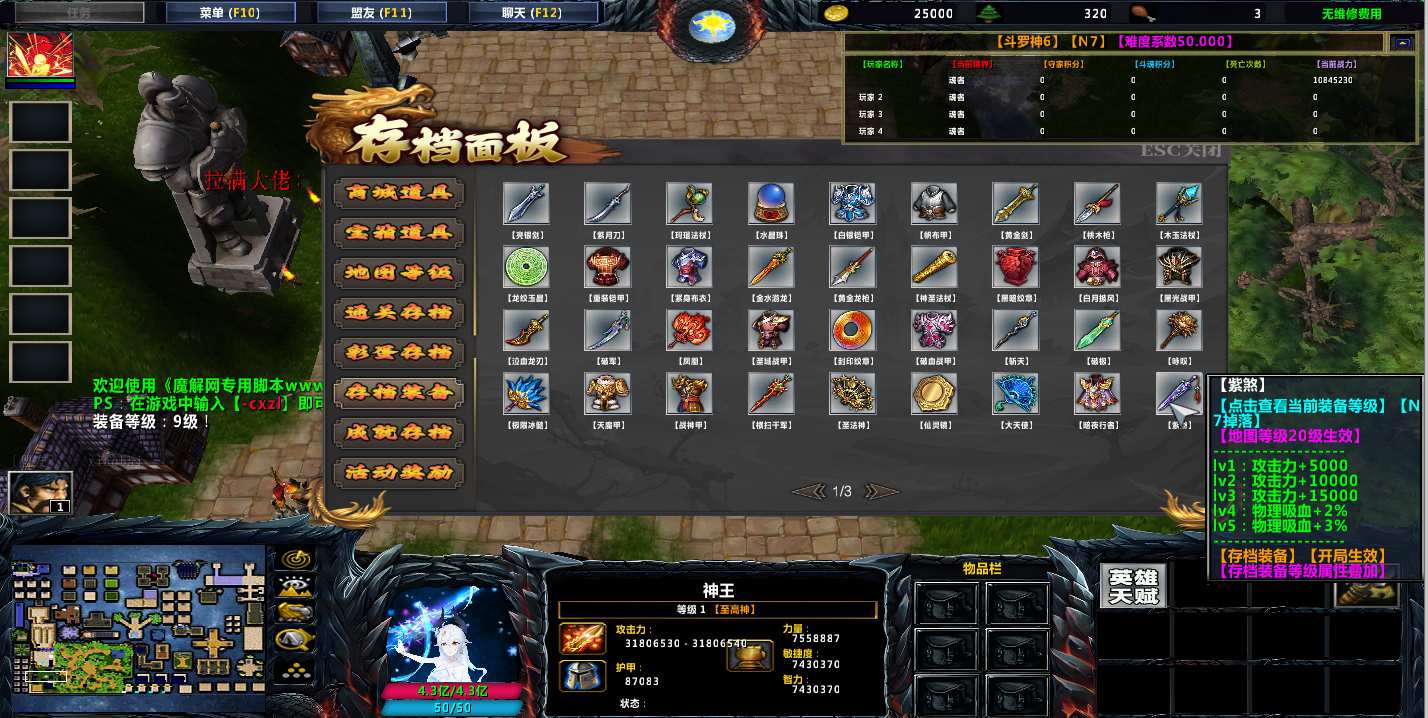 地图名字:斗罗神6 1.0.22地图下载+全商城特权+全存档+无CD+指令功能