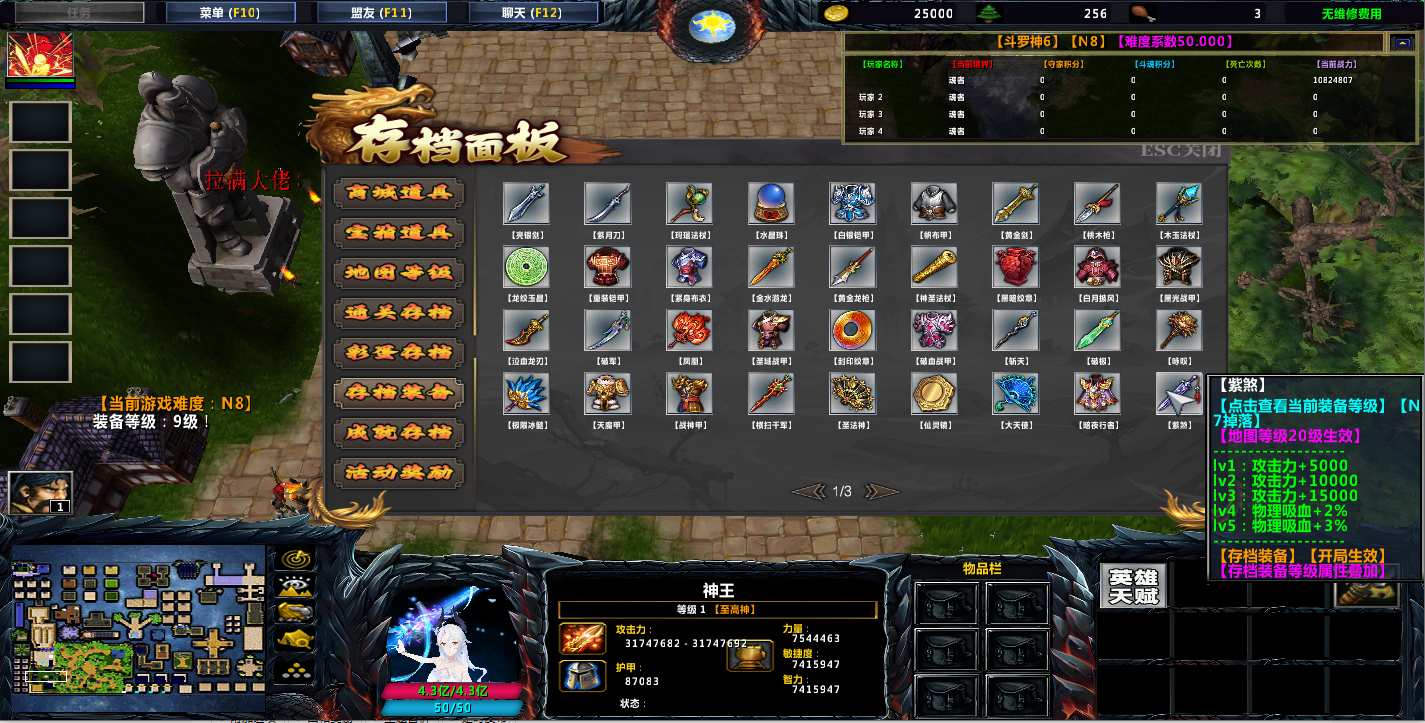 地图名字:斗罗神6 1.0.26地图下载+全商城特权+全存档+隐藏英雄+无CD+指令功能