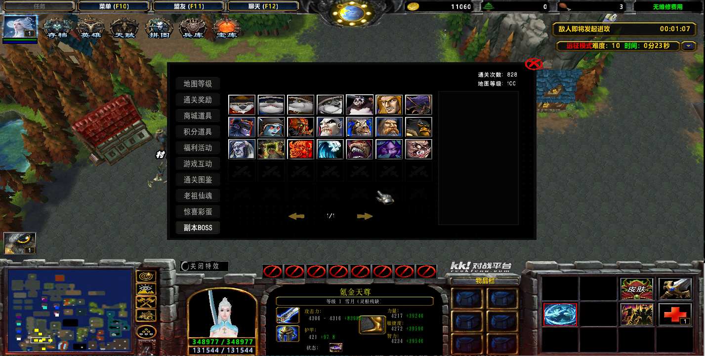 地图名字:老祖救我1.5.10地图下载+全商城特权+全存档+隐藏英雄+无CD+指令功能