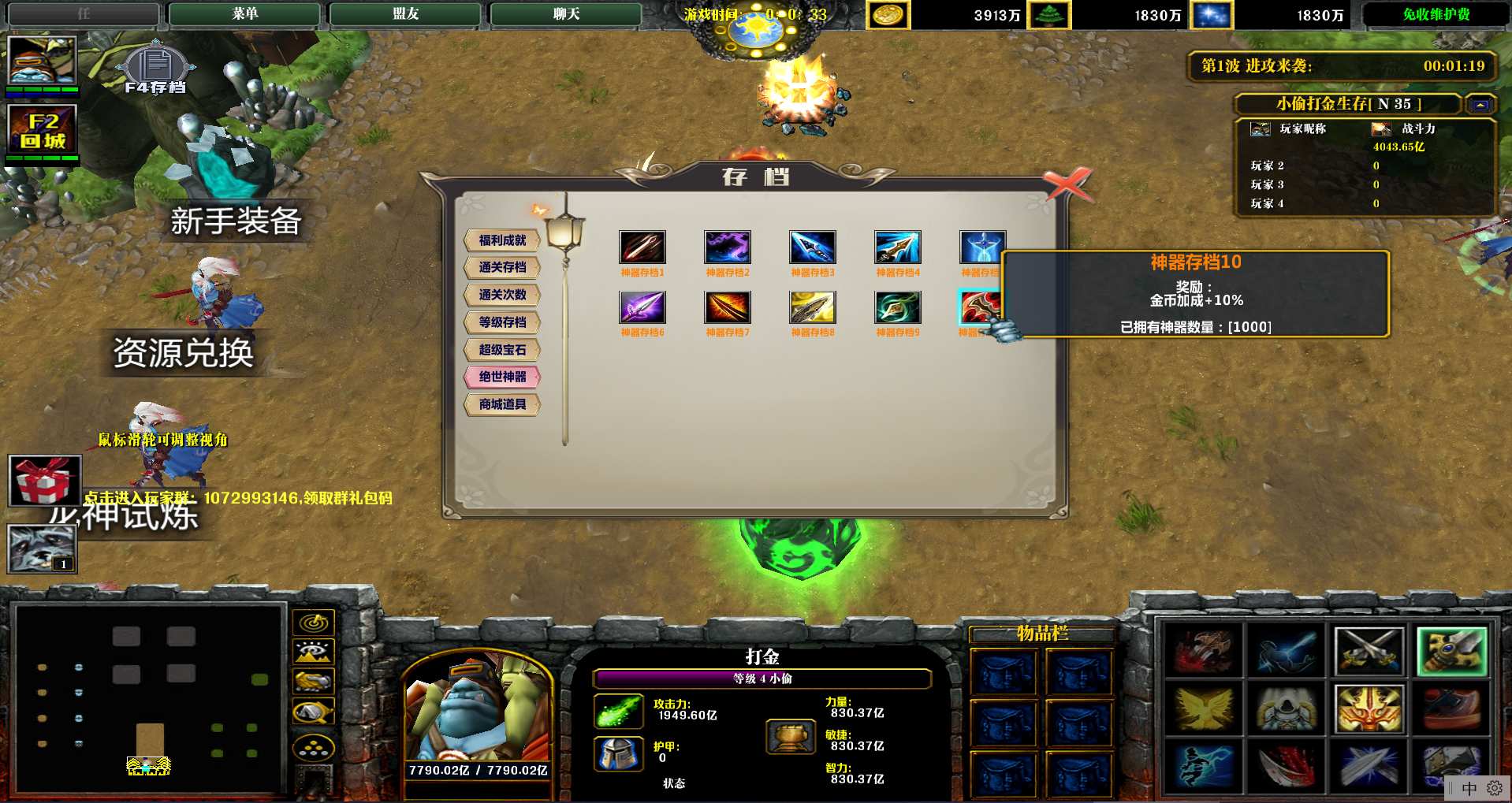 地图名字:小偷打金生存V1.3.6地图下载+全商城特权+全存档+无CD+指令功能