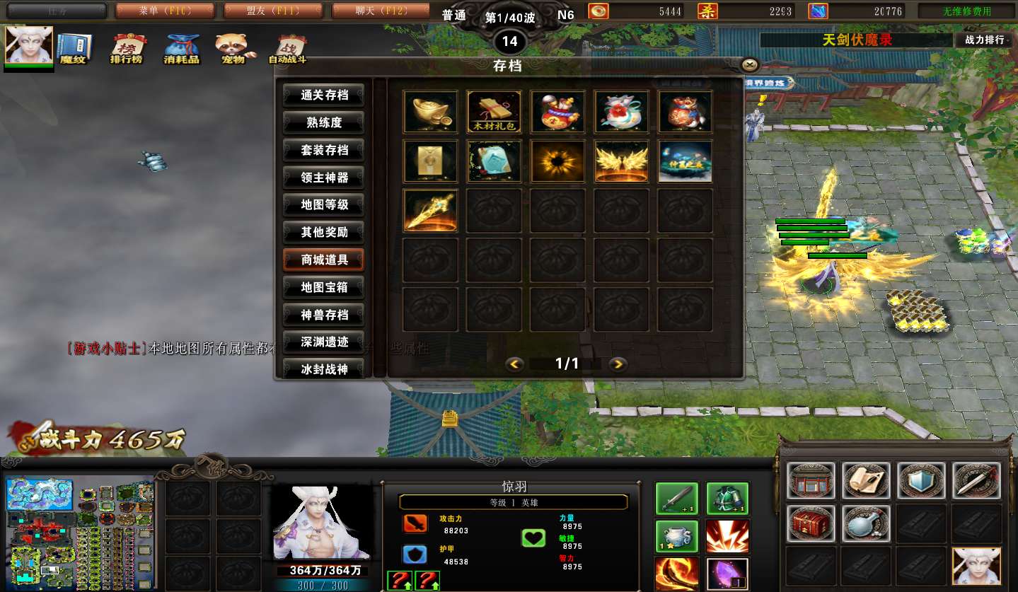 地图名字:天剑伏魔录1.1.10+商城特权+地图等级100