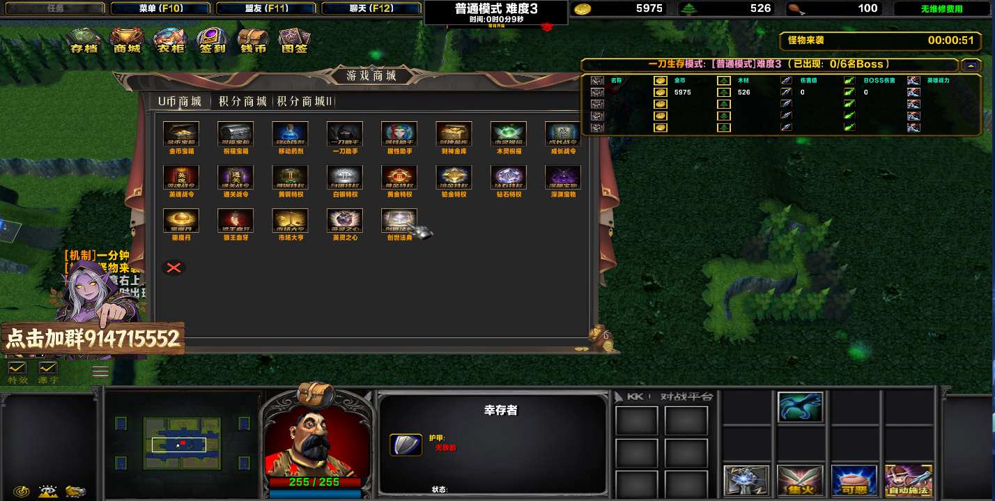 | 技能菜单【光环类技能】 | 自动化菜单【自动加钱木,提升英雄三围】 |