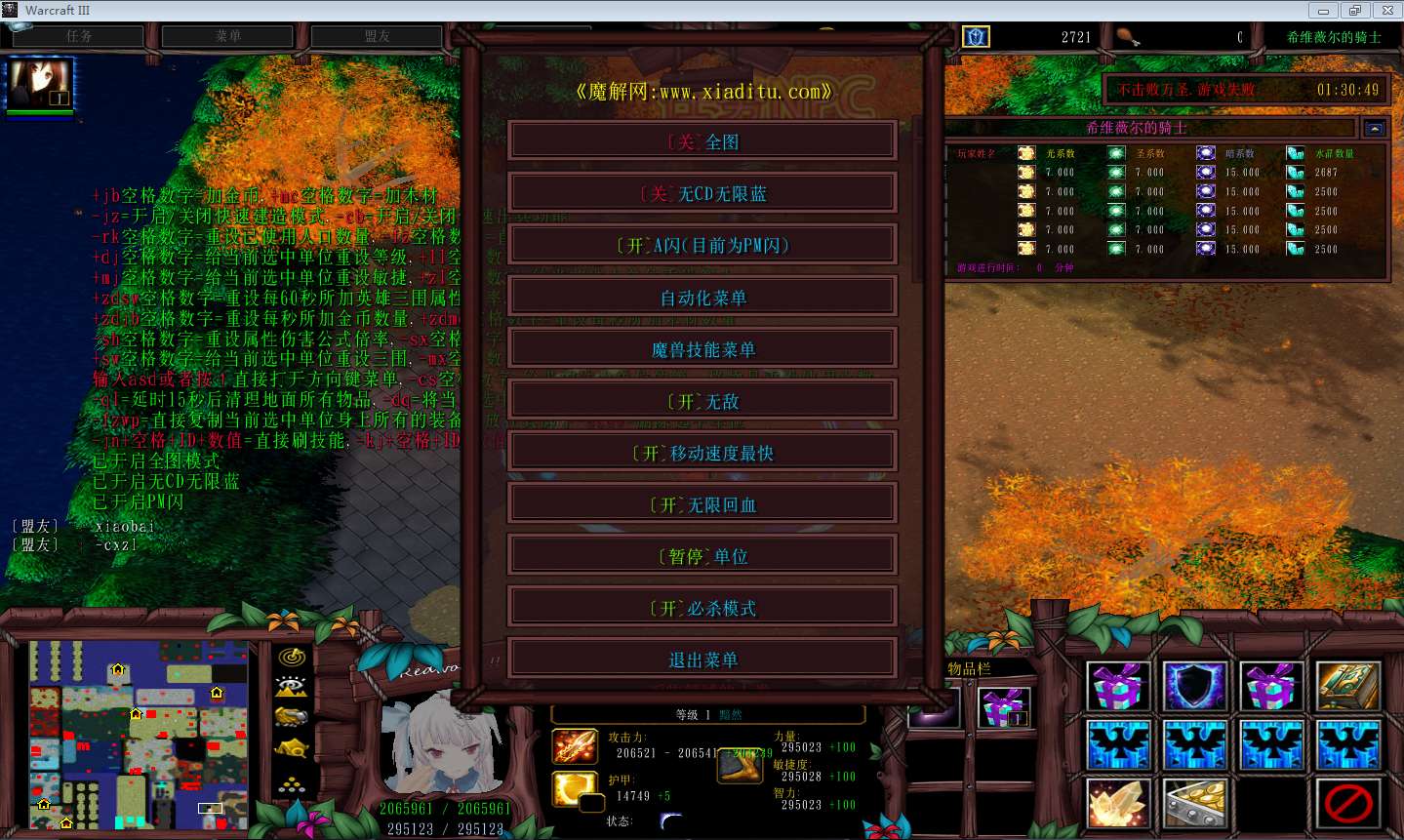 | 技能菜单【光环类技能】 | 自动化菜单【自动加钱木,提升英雄三围】 |