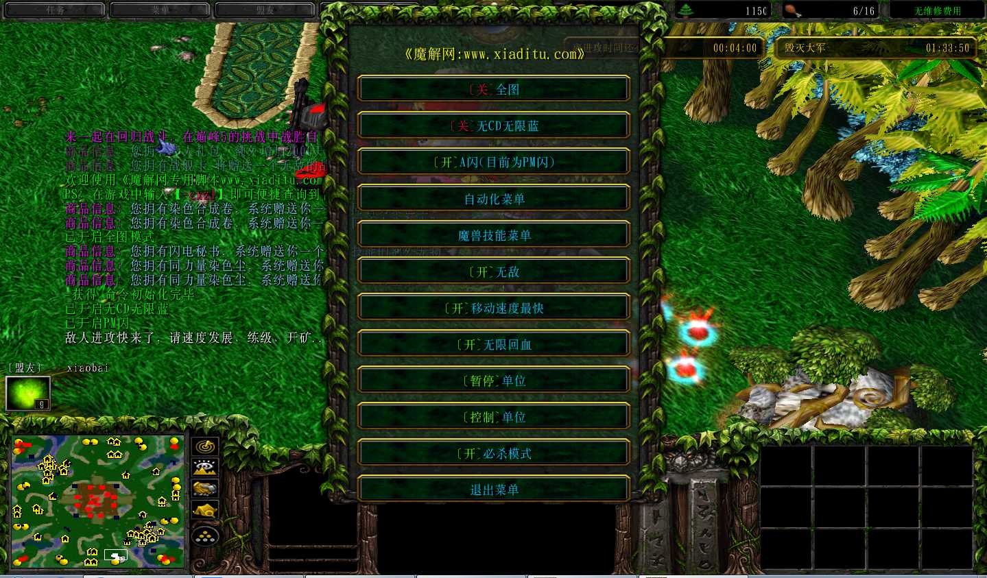 | 技能菜单【光环类技能】 | 自动化菜单【自动加钱木,提升英雄三围】 |