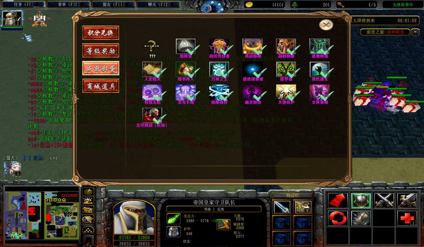 | 技能菜单【光环类技能】 | 自动化菜单【自动加钱木,提升英雄三围】 |