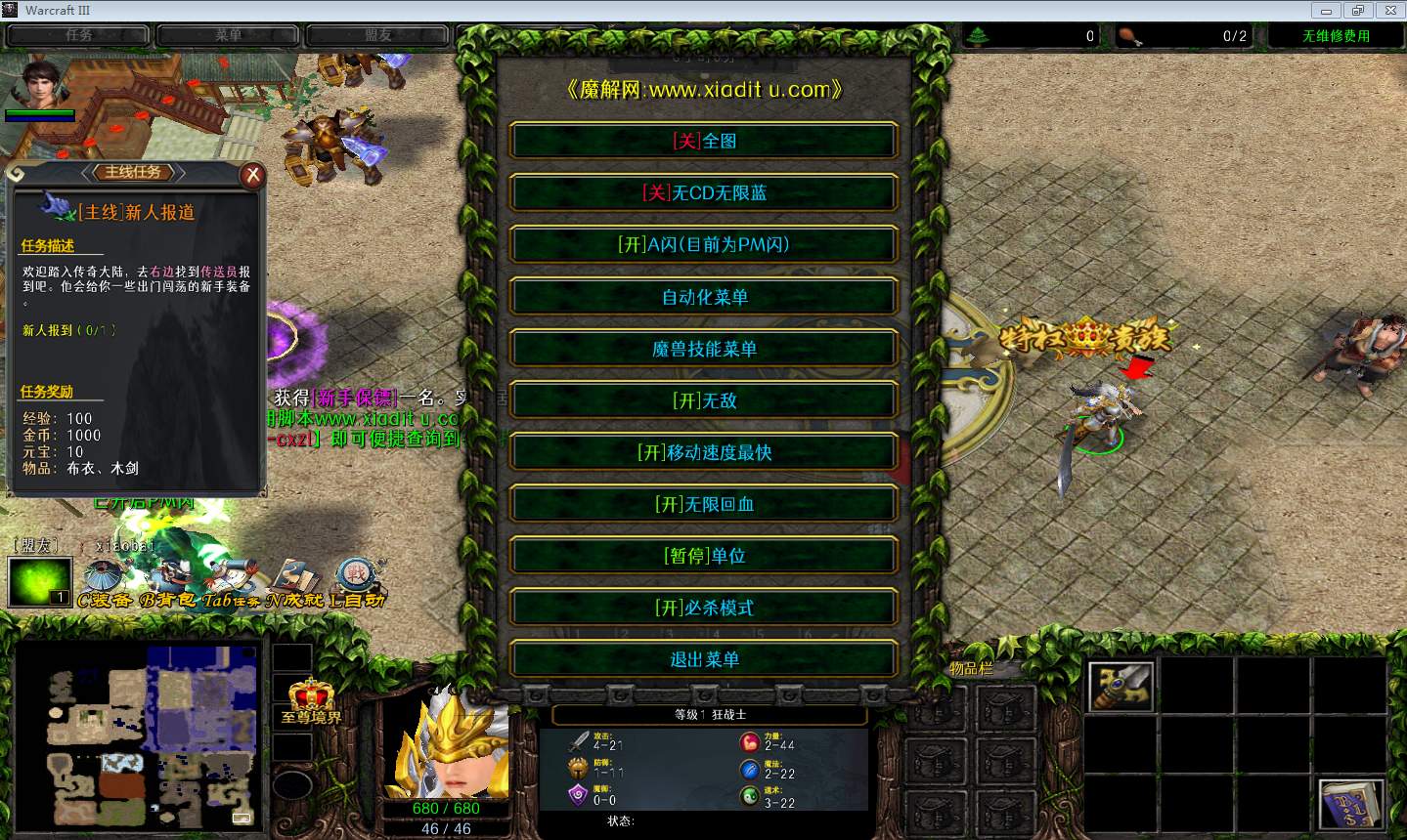 | 开启/关闭 移动速度最快 | 开启/关闭 无限回血 |