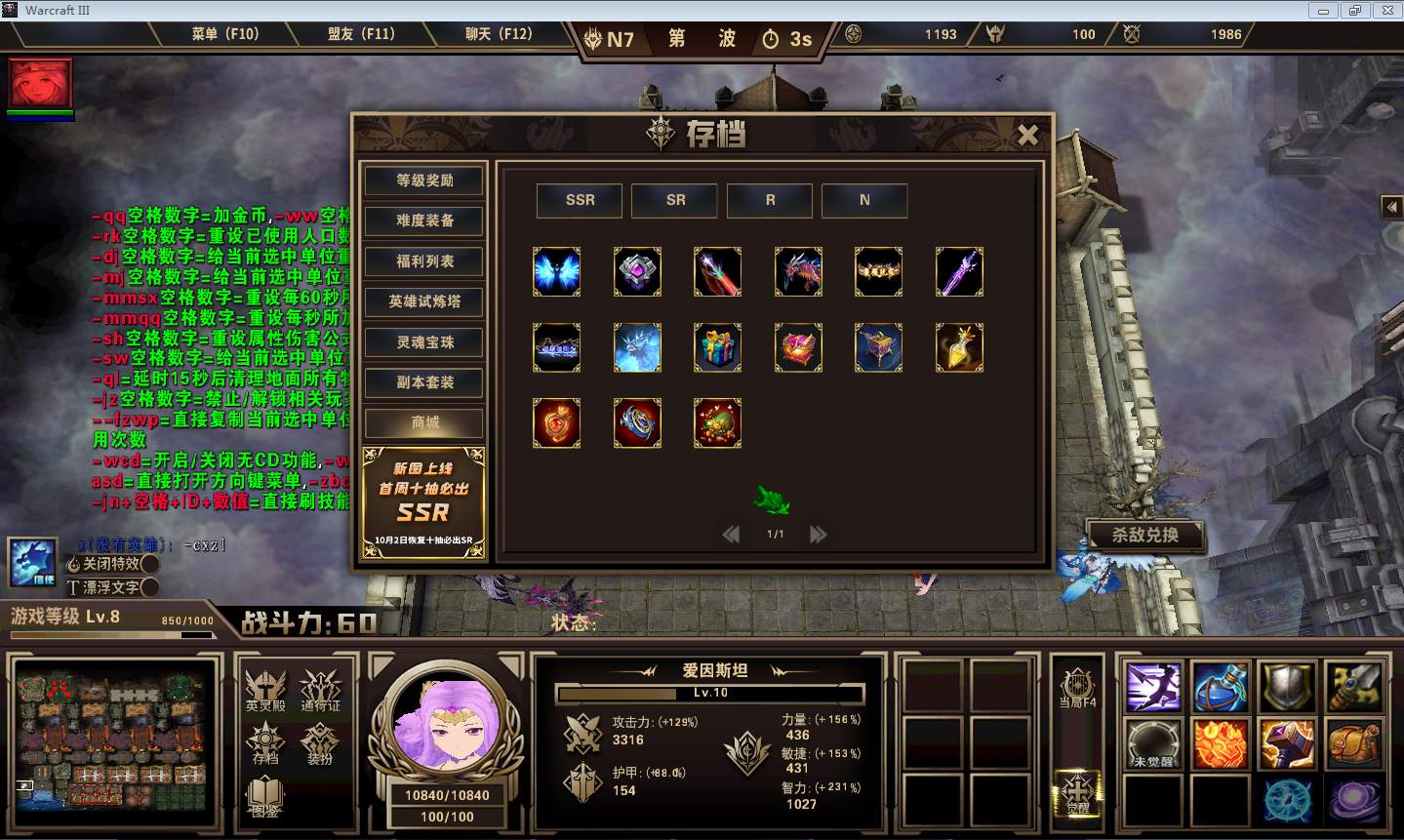 | 技能菜单【光环类技能】 | 自动化菜单【自动加钱木,提升英雄三围】 |