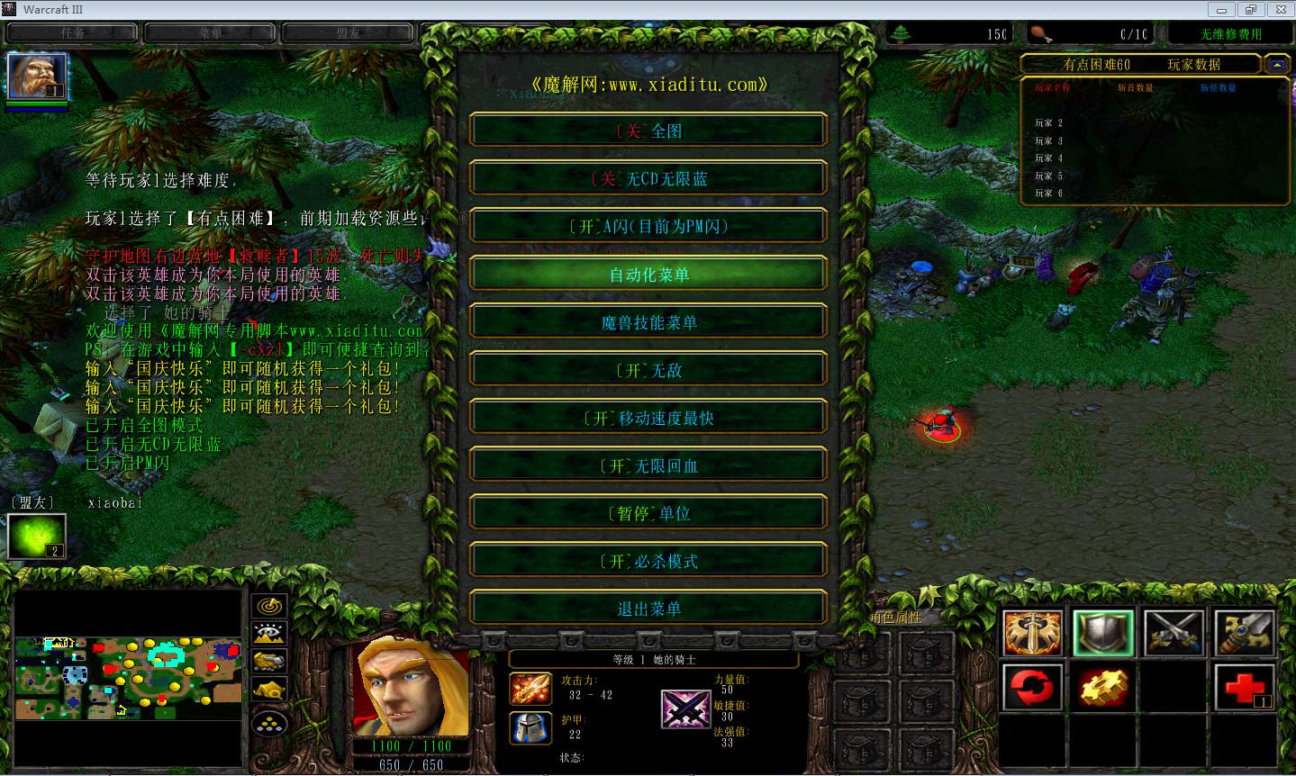 | 技能菜单【光环类技能】 | 自动化菜单【自动加钱木,提升英雄三围】 |