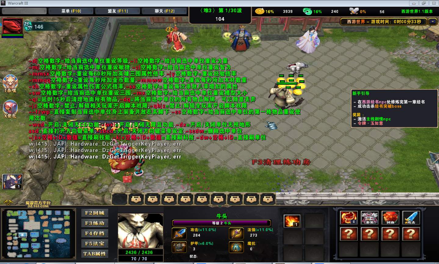 | 技能菜单【光环类技能】 | 自动化菜单【自动加钱木,提升英雄三围】 |