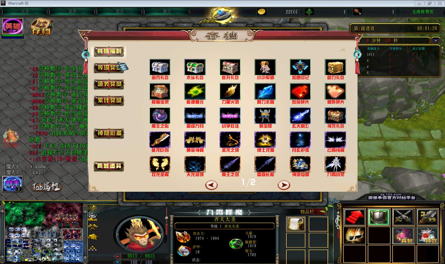 | 技能菜单【光环类技能】 | 自动化菜单【自动加钱木,提升英雄三围】 |