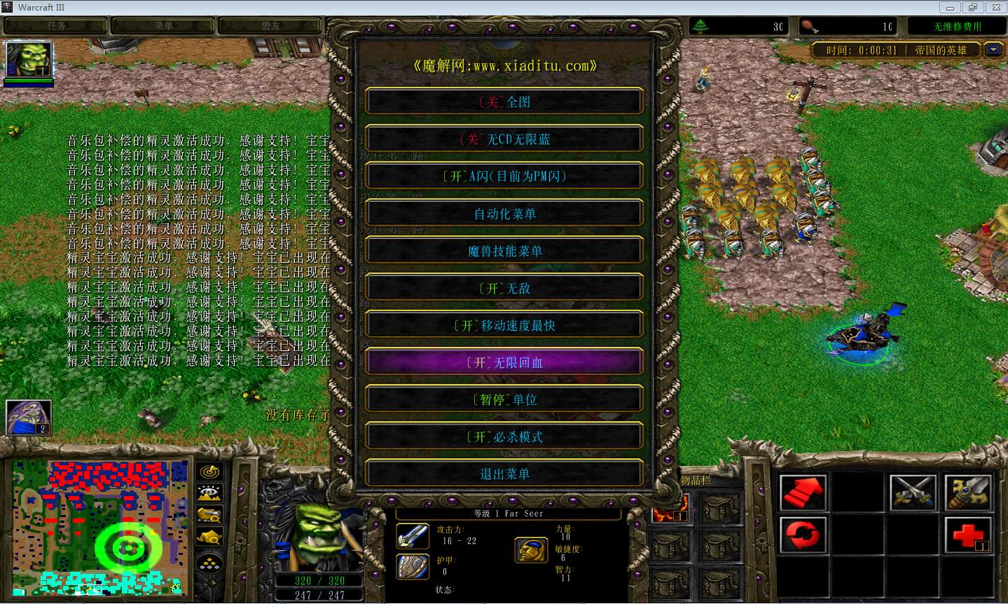 | 技能菜单【光环类技能】 | 自动化菜单【自动加钱木,提升英雄三围】 |