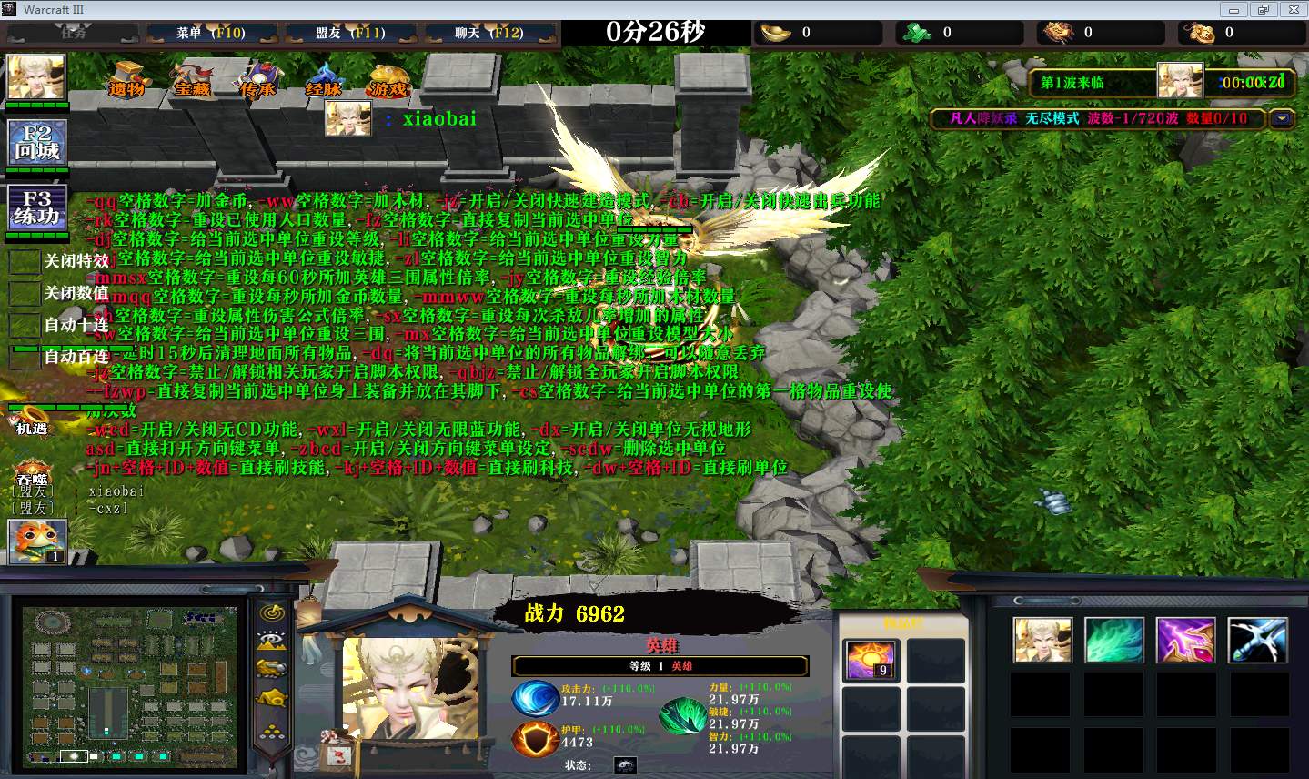 | 技能菜单【光环类技能】 | 自动化菜单【自动加钱木,提升英雄三围】 |
