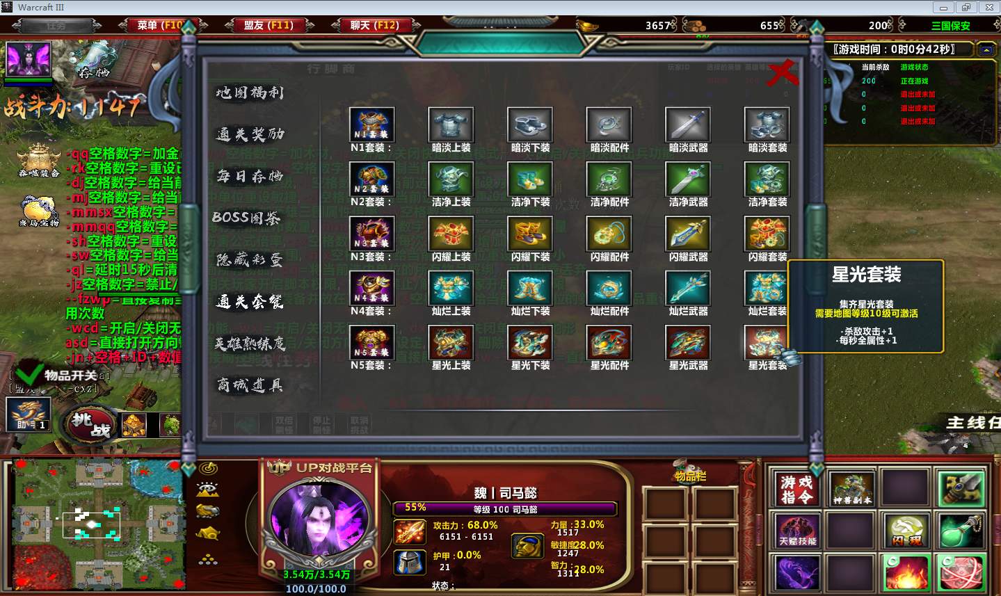 | 技能菜单【光环类技能】 | 自动化菜单【自动加钱木,提升英雄三围】 |