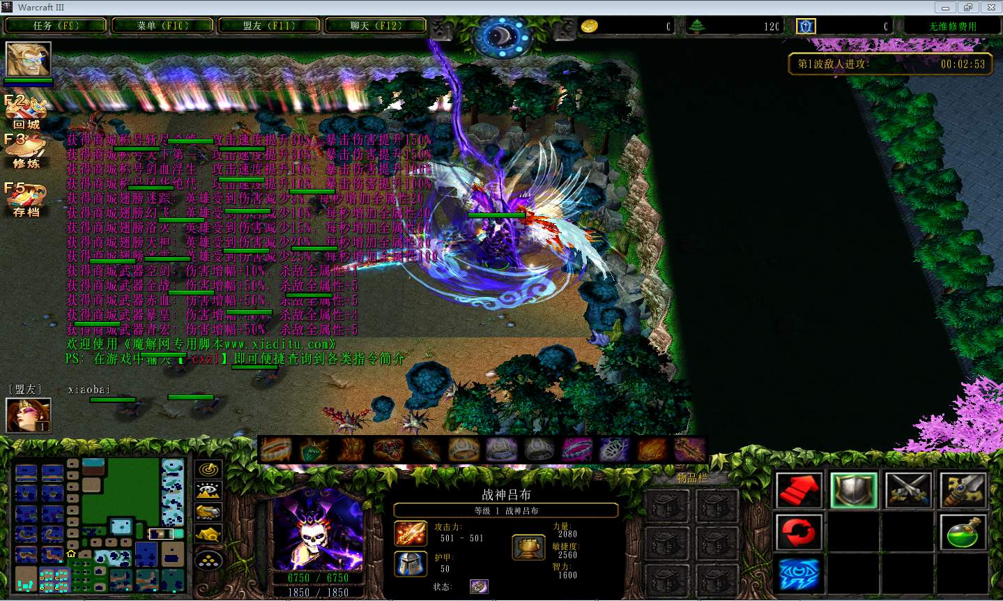 | 技能菜单【光环类技能】 | 自动化菜单【自动加钱木,提升英雄三围】 |