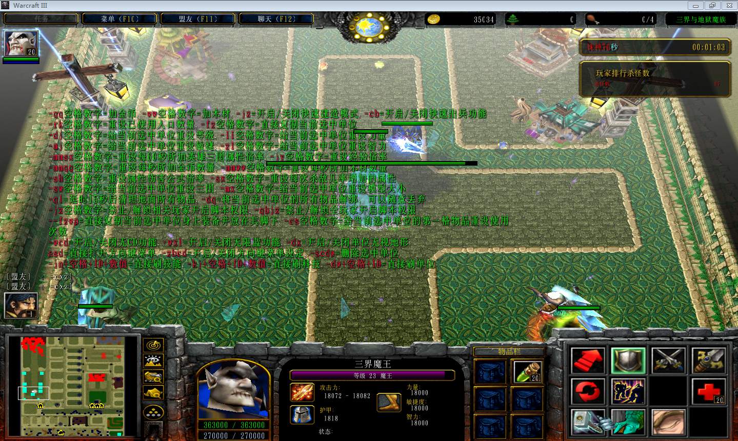 | 技能菜单【光环类技能】 | 自动化菜单【自动加钱木,提升英雄三围】 |