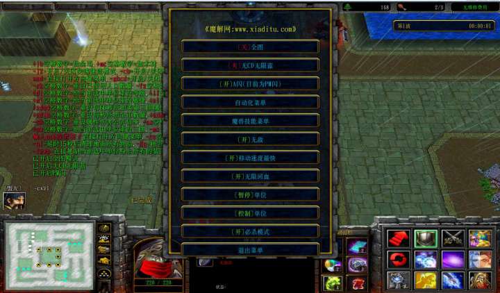| 技能菜单【光环类技能】 | 自动化菜单【自动加钱木,提升英雄三围】 |