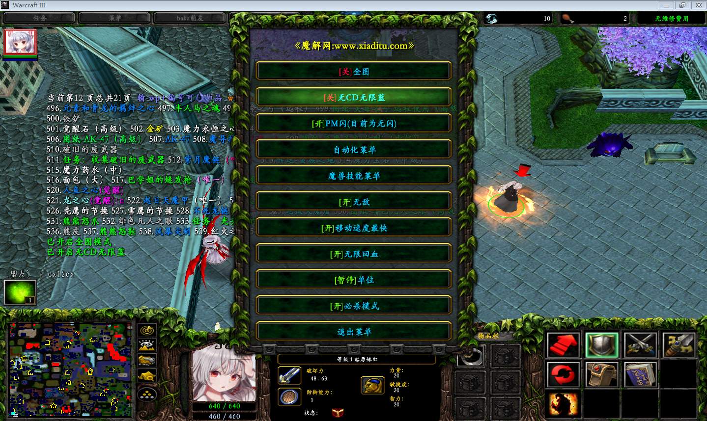| 开启/关闭 移动速度最快 | 开启/关闭 无限回血 |