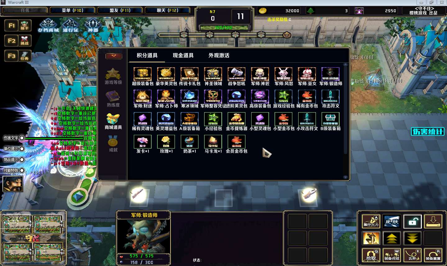 | 技能菜单【光环类技能】 | 自动化菜单【自动加钱木,提升英雄三围】 |