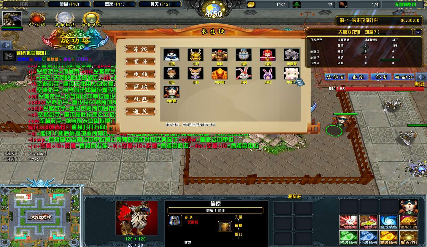 | 技能菜单【光环类技能】 | 自动化菜单【自动加钱木,提升英雄三围】 |