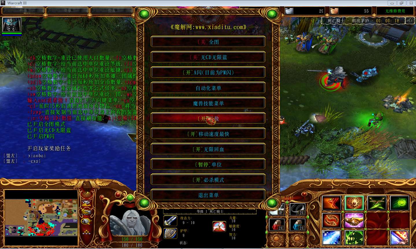 | 技能菜单【光环类技能】 | 自动化菜单【自动加钱木,提升英雄三围】 |