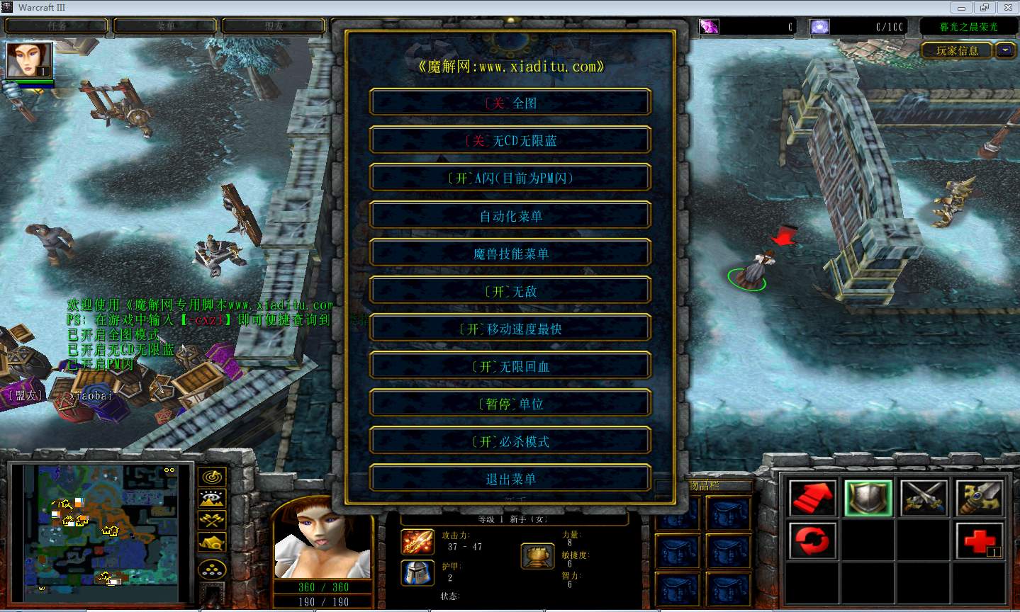 | 技能菜单【光环类技能】 | 自动化菜单【自动加钱木,提升英雄三围】 |