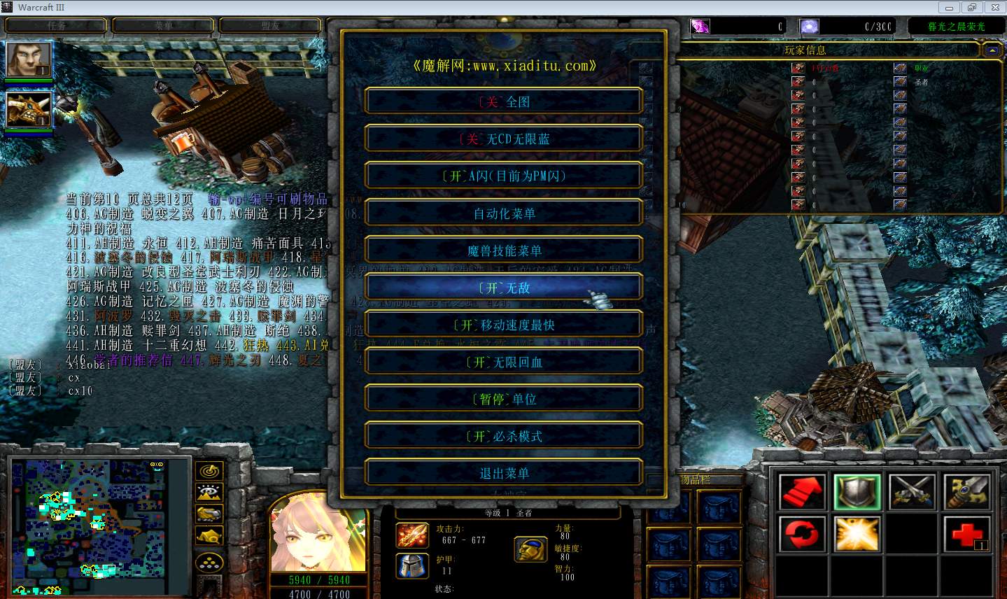 | 技能菜单【光环类技能】 | 自动化菜单【自动加钱木,提升英雄三围】 |
