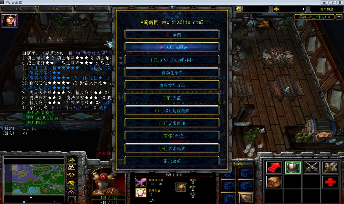 | 可设置英雄经验倍率 | 可解绑单位身上的物品 |