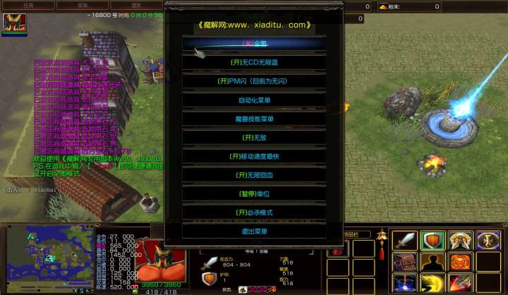 | 技能菜单【光环类技能】 | 自动化菜单【自动加钱木,提升英雄三围】 |