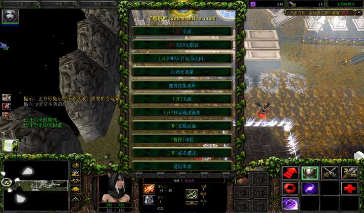 | 技能菜单【光环类技能】 | 自动化菜单【自动加钱木,提升英雄三围】 |